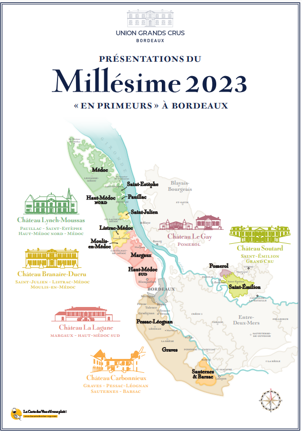 Here is the Programme of tastings of the 2023 Vintage "en Primeur", organised by the Union des Grands Crus de Bordeaux :