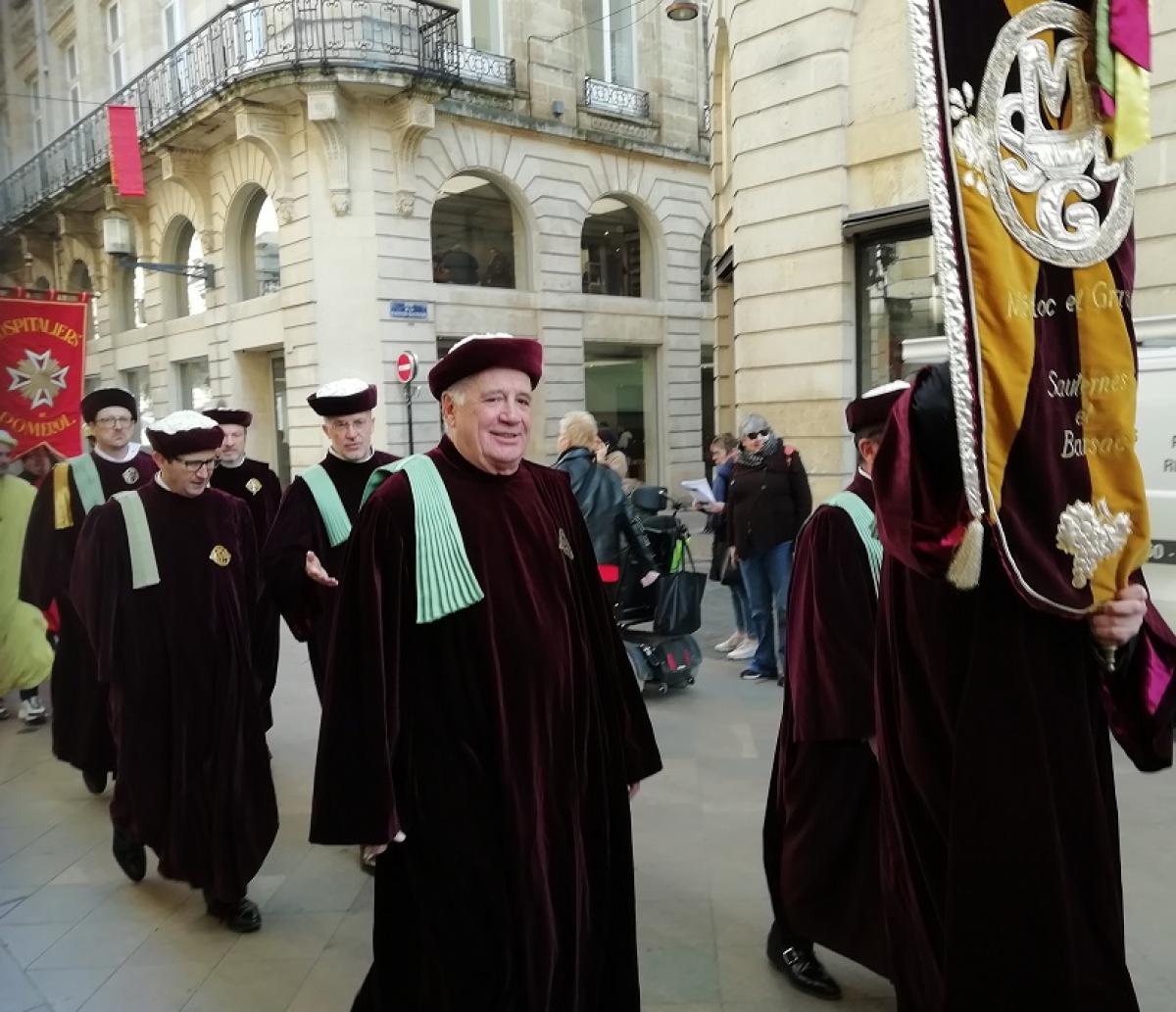 A la suite de cette rencontre, le Grand Maître du GCVB et les représentants des diverses confréries bordelaises ont défilé dans les rues de Bordeaux pour aller à la Mairie de Bordeaux pour présenter leurs vœux du nouvel an 2024 au Maire, Mr Pierre Hurmic.
