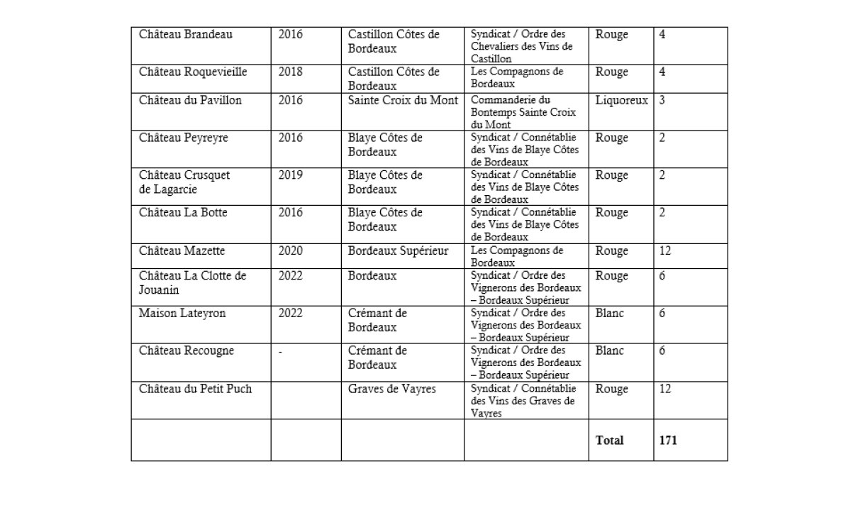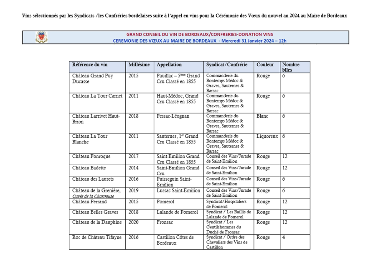 Les Syndicats et Confréries bordelaises ont sollicité la générosité des viticulteurs afin de présenter à la Mairie de Bordeaux une belle sélection de vins de la région.