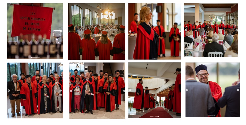 Le 21 mai 2024, la Confrérie des Gentilshommes du Duché de Fronsac a intronisé d’illustres Wallons et accueilli chaleureusement une consœur vigneronne, Sally Evans de Château George7.