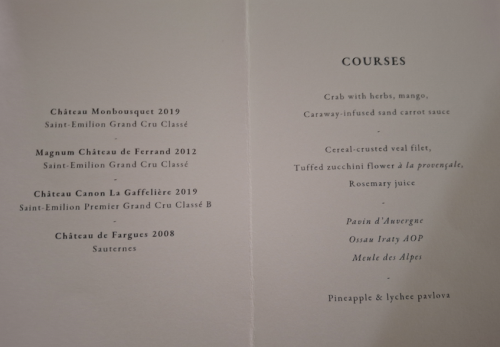 Pour clôturer le Congrès des Maîtres 2024, les Congressistes ont eu plaisir d’être reçus au Château de Ferrand, par le Comte et la Comtesse de Chandon-Moët, pour un superbe Dîner de Gala.
