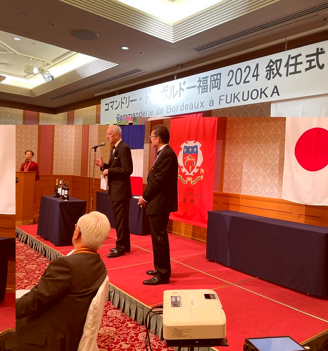 La Commanderie de Bordeaux à Fukuoka a organisé un Chapitre, à l’Hôtel Okura à Fukuoka, le 24 novembre 2024, en présence du Grand Maître du Grand Conseil du Vin de Bordeaux, Jean-Marc Dulong.