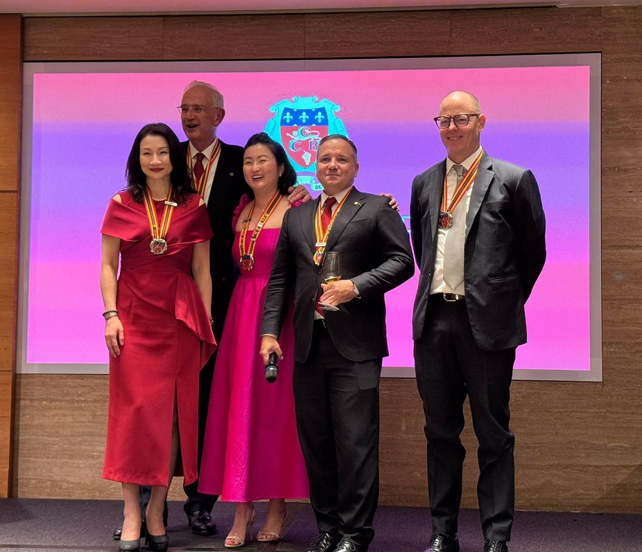 Au Grand Hyatt Hotel Singapore, dans le Grand Salon (avec cuisine de démonstration), la Commanderie de Bordeaux à Singapour a organisé, le 5 décembre 2024, une superbe cérémonie d'intronisation, présidée par le Grand Maître du Grand Conseil du Vin de Bordeaux, Jean-Marc Dulong.