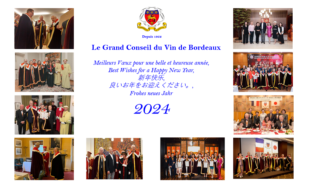 The Grand Maître, Jean-Marc Dulong and all the members of the Grand Conseil du Vin de Bordeaux present you their best wishes for a Happy New Year 2024.