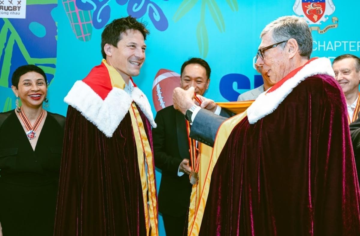 He is of Vietnamese origin by his grandfather and set up an association named «Rugby Cung Nhau» « Rugby together », to educate orphans and deprived children through this sport.