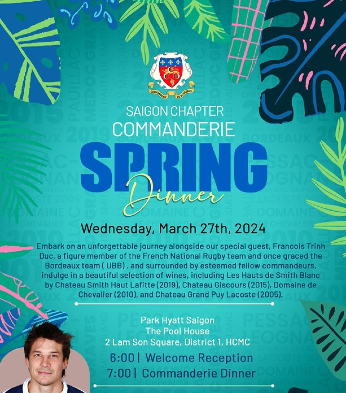 April 2, 2024Commanderie de Bordeaux in Saigon. Induction, Springtime Dinner and Auction, on 27th March 2024