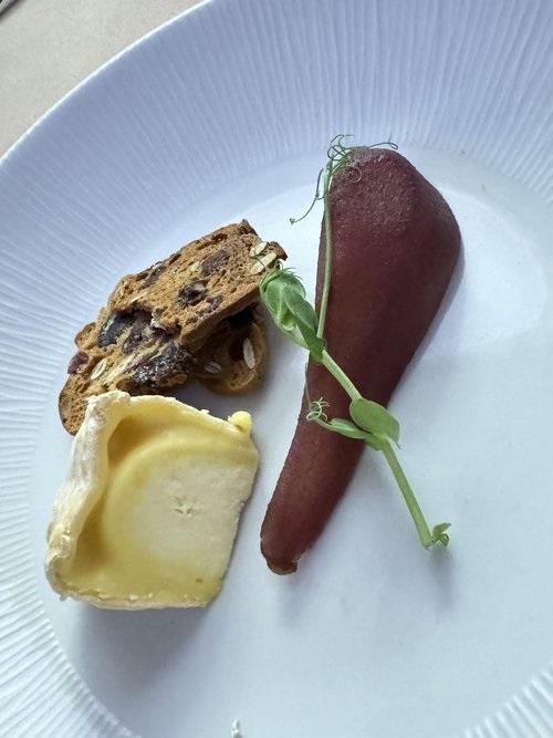 The cheese course featured Solstice cheese from Somerset which was a hit with many of us – soft, rich and mouth-filling – and well matched with a lesser known wine from Château D’Eck in Pessac-Léognan, from another outstanding vintage – 2010. This was a revelation to many members as few had even heard of it let alone drunk it but will certainly remember it in the future – for some the wine of the night.