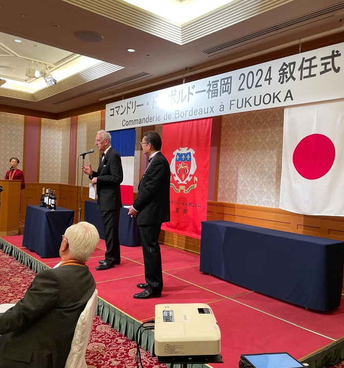 The Commanderie de Bordeaux in Fukuoka held an induction ceremony and Gala Dinner at the Okura Hotel in Fukuoka on 24th November 2024, in the presence of the Grand Maître of the Grand Conseil du Vin de Bordeaux, Jean-Marc Dulong.